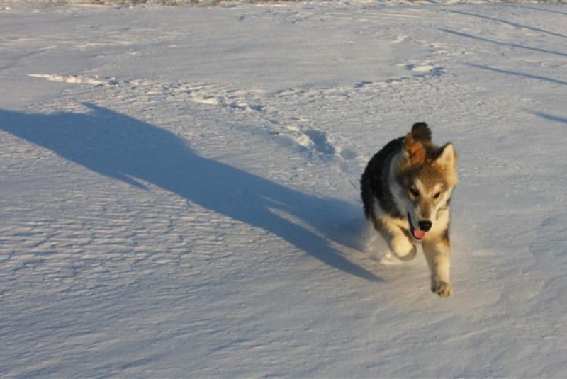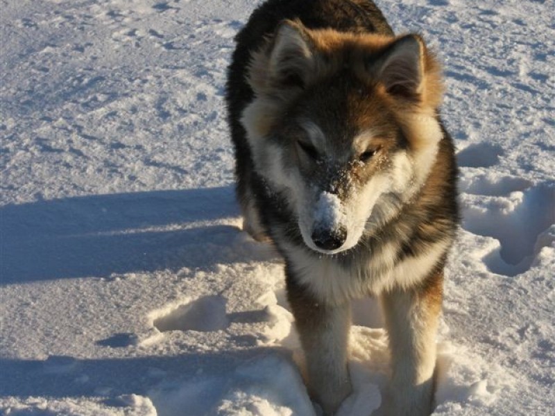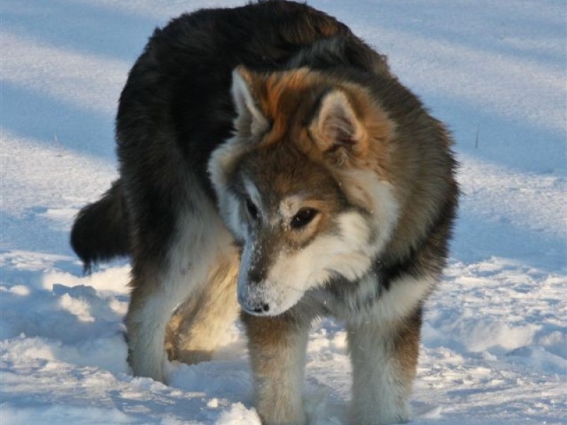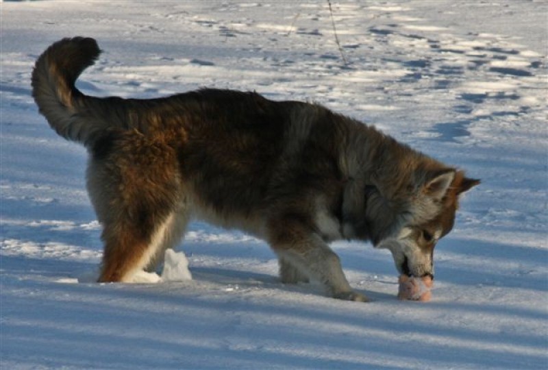Having worked with many dogs before, I've seen some interesting differences in and with the Tamaskans. They are very intelligent. They solve problems by clearly thinking things through in ways many dogs do not. They also use their paws a great deal to get toys and food, etc. in ways most dogs do not. George also handles cold weather much better than our other dogs. And then there's the eyes. This you'll have to experience to believe but they can say so much with their expressions and use of their eyes in a way many dogs do not.